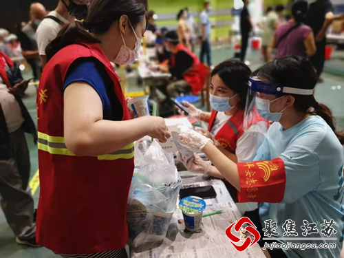 有志愿者们和医护工作者们的辛勤付出,也自然会有关爱他们的人在。果场社区的居民方剑,在社区马群新街经营一家餐饮店,作为社区“齐益果”积分制联盟商户的店主,此次核酸检测行动,她与自己的丈夫主动到社区报到,希望加入志愿者队伍尽一份心力。“社区的工作人员这几天很辛苦,我就让店内准备了绿豆汤送来给大家消暑。”