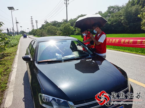 穿着红马甲站在路边的党员志愿岗,有过往车辆通行,就及时拦停,进行行程询问、测量体温、苏康码查阅。这个正在交通枢纽防控点忙前忙后的人叫端木雨豪,是端家斌的儿子,也是一名退役军人,退役后就回到学校继续深造,疫情发生,又正值暑期,从小受到党员爸爸的教育熏陶,对于这种志愿者工作一直充满热忱的端木雨豪想都没想就跟着父亲一起投身于疫情防控的工作中去。