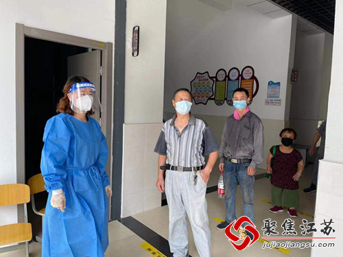 摘要:在南京市湖熟街道河南社区的核酸检测点,有一位穿着防护服短头发的女性志愿者,站在核酸队伍的一米旁,指挥着队伍前进,时不时还提醒着居民保持间隔距离一米。