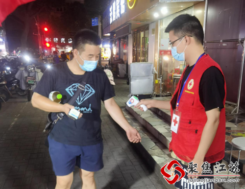 “请出示健康码,配合检测体温。”8月5日晚9点,果场社区红十字会志愿者在马群公寓小区防控检疫点给居民测温,炎炎夏日,汗水几乎浸透了衣衫,嗓子也因为持续的叫喊显得十分沙哑,疫情当下,他们主动作为、敢于担当、齐心协力、无怨无悔,用行动诠释了“人道、博爱、奉献”的红十字精神。