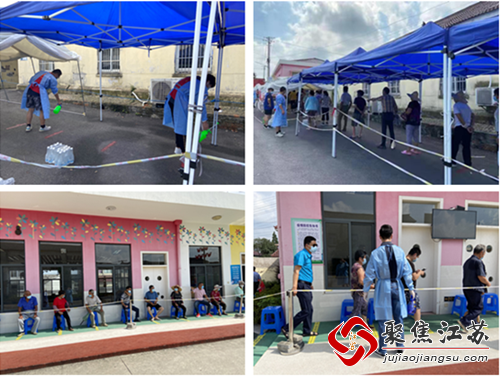 为了加强疫情防控,严防传播源,阻断传播链,淳化街道周郎村组织人员于8月6日开展了新一轮的全民核酸检测。一早周郎村党总支书记许杭杭,就带领着辖区内两委、志愿者和网格员就核酸检测开始安排现场,遮挡阴凉的蓝色顶棚、隔开人群的出入通道、人均间隔的通道贴条,事事具细,一丝不苟。