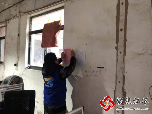 近日,湖熟街道绿杨村网格员为村内的危房村民张贴...