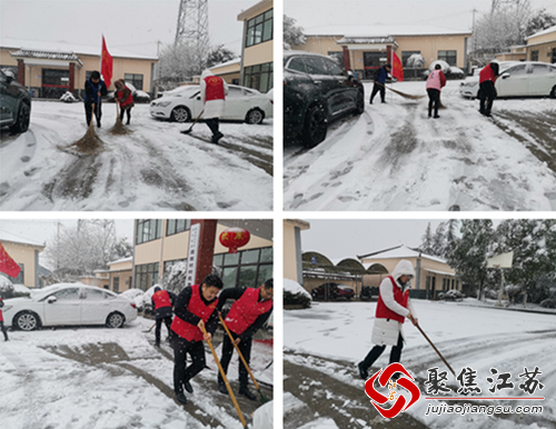 2月7日,南京迎来了今冬的第一场雪,受雨雪冰冻天气影响,出现了道路积雪、结冰、树木冰冻折断现象,影响了市民出行和交通安全,为保障市民出行安全,充分发挥党的突击队作用,周郎村党总支书记许杭杭带领两委、网格员、巾帼志愿者、辖区内党员同志等一切可以动员的力量进行扫雪活动。