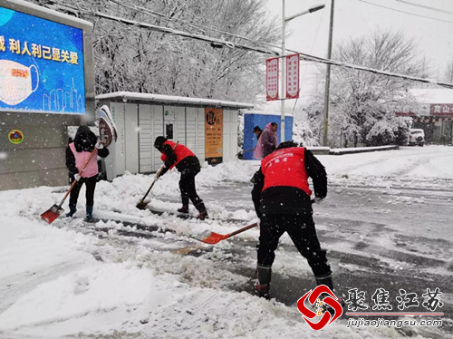 社区志愿者们闻雪而动,有的拿起铁锹清理路面积雪和冰冻,有的拿起溶雪剂进行喷洒,大家干的热火朝天,即使寒风凌冽,大雪纷飞他们依然用自己的一腔热情为居民们清理出一条“幸福路”。经过志愿者的连续奋战,社区的主次干道道路、公交站台、行人和非机动车道以及村庄内的积雪和冰冻都被清除了,保证了道路的安全畅通、消除了安全隐患。