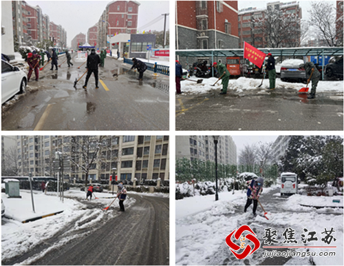 雪景虽美,但却给居民的出行带来诸多不便。2月7日,禄口街道陶东社区组织社区两委班子、党员、网格员以及志愿者展开扫雪行动,及时清理辖区道路及车棚积雪,方便居民出行。