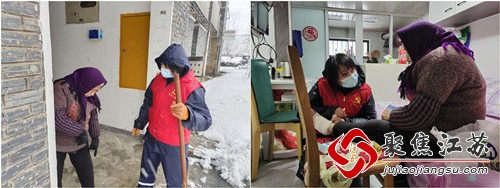 社区党务副书记朱云慧在扫雪过程中发现楼道口有位老人,上前询问后发现她想要出门,朱书记耐心的告诉她下雪天尽量不要出门。在上门了解详细情况后,发现原来是老奶奶脚被烫伤,想出门买药。朱书记让老人在家好好休息,自己代她去买药。买完药后为老人敷药绑绷带,帮忙清理房屋内积水,防止老人滑倒,并留下电话让老人有困难随时联系。