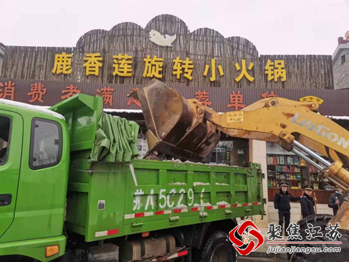 汤山城市治理中队秉持着发扬不怕苦、不怕累的精神,对汤泉东路、汤泉西路、汤龙路等主次干道重点路段两边打堆的积雪进行清运,中队队员们拿着铁锹干劲儿十足,他们一铲铲的把积雪铲进装载机中,最后用运输车将积雪运走,避免影响市民出行。在清运的同时,队员们还不忘提醒来往行人注意安全,防止滑倒。
