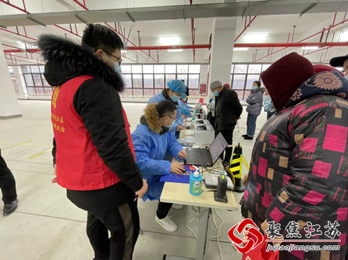 接种点设在雁冲路腾泓服饰新厂区(淳湖佳苑东侧200米),采用单向通行的方式,分设健康码查验区、建档区、接种区、留观区等区域。疫苗接种现场,网格员和志愿者们积极维持秩序,通过小喇叭提醒居民们戴好口罩、保持一米间距。居民自觉排队,现场秩序井然。打完疫苗后,居民们还可以收到社区赠送的小礼品。