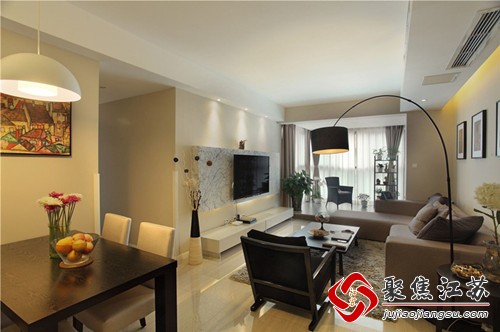 (3)墙面柜体最好将电视内嵌上,这样节省空间,视觉上更有设计感。