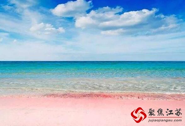 粉红沙滩绵延数里,在耀眼的阳光下,本应闪着白色光芒的细沙,经海水浸润后,竟神奇地泛着淡淡的粉红色。笔者身处一眼望不到头的淡粉色里,犹如闯入了一个粉色的童话王国,踩着脚下松软的沙子,欣喜兴奋无以言表,不由得赞叹:“太浪漫了!”