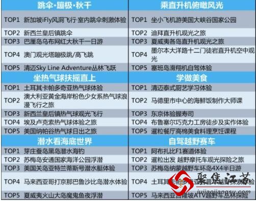 在塞班岛坐上滑翔机翱翔天际,在夏威夷火山大岛魔鬼鱼夜潜入神秘海洋,在阿布扎比F1赛道上体验风驰电掣……根据携程全球玩乐平台的大数据显示,今年“十一”黄金周,预计近700万人次的中国游客走出国门,除了各国的热门景点,高空体验、热气球、潜水、直升机、特色课程、越野赛车六大新类型最受欢迎。
