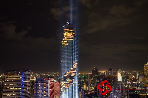 上图中那个看似破败不堪的大楼就是今天要给大家介绍的,它位于泰国的首都曼谷,叫做mahanakhon大楼,在泰语里面意味着伟大的都市,如果大家在白天看到它的话一定以为是无良的商家建造的烂尾楼,从建筑的特色看起来和周围的特色格格不入。