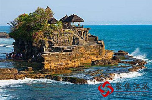 在一个巨大的岩石之上,它是巴厘岛著名的寺庙之一,巴厘岛人祭奠海神的地方。在海边的一个庙。在那里不但可以看到神庙,还可以看到海浪拍打着岸边,夕阳西下的美景,神庙右侧有一突起岩石是拍摄日落和海神庙的绝佳地点。
